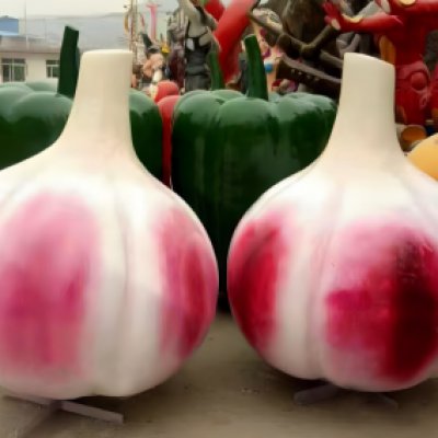 景区园林蔬菜摆件,采用玻璃钢材料制作,仿真大蒜的形态逼真,色彩鲜明。它不仅为园林景观增添了趣味性,还体现了对自然和艺术的尊重与追求。