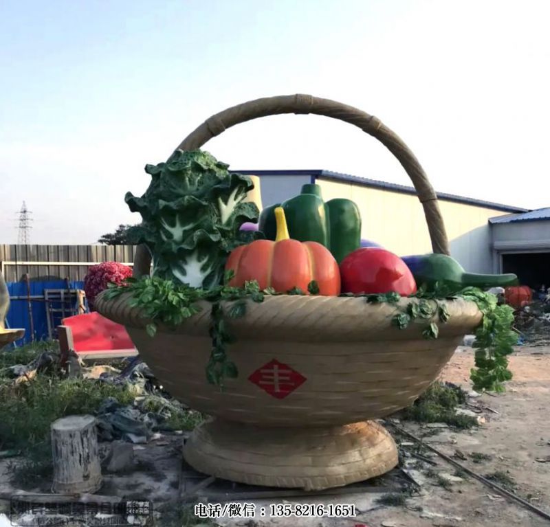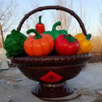 园林户外的大型菜篮子雕塑,采用玻璃钢材质,以其逼真的仿真效果和创意设计,为园林景观增添了一份生动与活力,成为户外空间的一道亮丽风景。